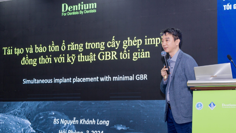 TS.BS Nguyễn Khánh Long báo cáo kỹ thuật ghép xương tại hội nghị Minimalism In Dentium